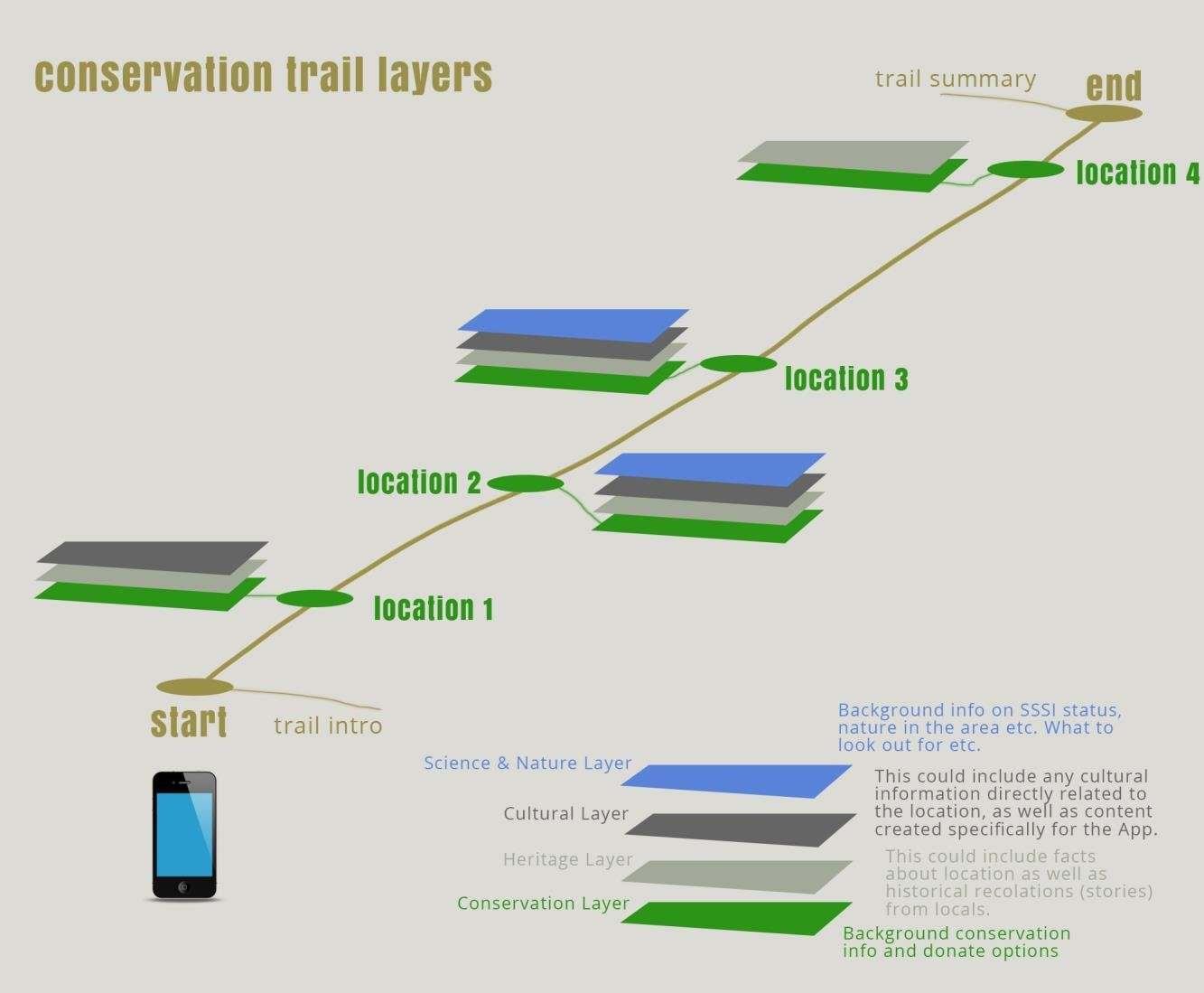 This project is about a map and location based smartphone App, that will guide both locals and tourists around the Isle of Portland, via set routes. Information will be provided along the route depending on the user’s location. This information could be a mixture of on- screen visual information, and potentially, in the form audio narratives. There will also be the option for users to make donations from within the App, targeted at the conservation of the footpaths and the Island in general.
